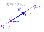 直線上の点は,方向ベクトルの何倍を足すかを表す媒介変数tの値と対応しているので,直線の方程式を媒介変数表示で表して,tの値を求めるとよい.直線x−2===t上 の点の座標は,媒介変数tを用いて