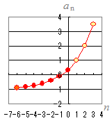 |r|>1のときは凹レンズになっているという話はどうなった? a0 ,a-1 ,a-2 と延長していくと,→(a-2=)-0.407 →(a-1=)-0.111 →(a0=)0.333 →(a1=)1.000 →(a2=)2.000 →(a3=)3.500 → ... となって,−1を焦点として広がってくるということが分かる.![]() a0とかa-1なんて話を子供に聞かせてもよいのか? 教科書には出てきませんが,入試問題ではa0から始まる数列は,時々出てきます.ここでは,仮想的に延長していったらということです. |