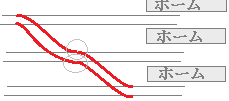 ![]() 駅のホームで線路をよく見ると,ホームが3つあるような場合には,線路が単に交差しているのではなくて,直進もできさらに向こうの線路にも行けるように三重解の形に作ってあることが分かります. ![]()