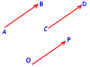 | [解説] ベクトルは「大きさ」と「向き」をもつ量として定義され、「大きさ」と「向き」さえ等しければ、「どこに書いてあるか」=「始点がどこにあるか」を問わずに等しいベクトルといいます。 ![]() 例えば、右図の3つのベクトルは等しいベクトルです。 ここで、始点を原点に置くことにすれば、ベクトル(の終点)が位置を表すようになります。 |
