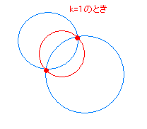 は,定数 k の値にかかわらず2交点を通る円を表す.