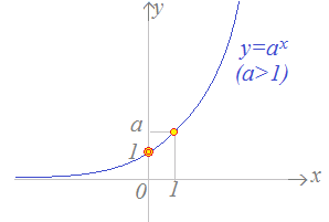 •図1に示されるように,a>1のときy=axのグラフは単調増加(右上がり)になっていいます.