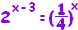 22x-4=22-x → 2x-4=2-x これで指数は外れましたので、あとは単なる1次方程式です。 3x=6 より x=2・・・答 ●2の解説: