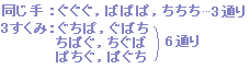 【アイコとなる場合1】 3人とも同じ手の出し方=3通り 【アイコとなる場合2】 3種類の手が全部出る出し方 =3×2×1=6通り (※以上2つの場合は排反で重なりはない) 以上により,プレーヤーが3人から3人になる確率は