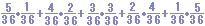 解説 x+y+z+w=20,x,y,z,w≧1だけならば重複組合せの問題として解けますが(重複を許して4個の名前を16回呼ぶ) x,y,z,w≦6の取り扱いが大変ですので別の方法を考えます. 2つずつ組み合わせて特大-大の組,中-小の組について出た目の和を表にすると,次の組合せが題意を満たします. ![]() |