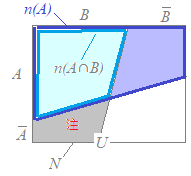 ※事象Bが起こる確率[単なる(普通の)確率]は,集合Bの要素の個数n(B)を全体集合Uの要素の個数で割った分数で定義されます. 分母を払って変形すると,