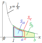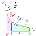 ただし,x=1の右側にある面積を正とし,図のb'のようにx=1の左側にある面積は負の符号をもつものとします.(以上のことは数学Vで習います)