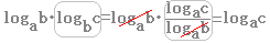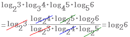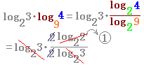例題 次の式を簡単にしなさい。 (1) logab・logbc 答案 底をaにそろえる場合 (2) logab・logbc・logca 答案 底を第4の文字dにそろえる場合 ![]() |