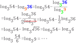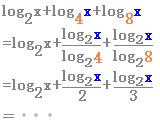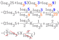 (4) log3x+2log9x 答案 底を3にそろえる場合 ![]() |