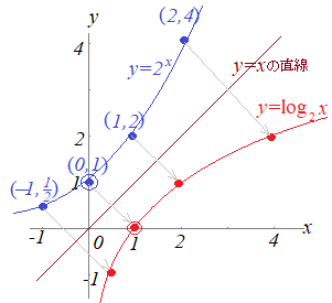 【例1】◎対数関数のグラフy=logaxのグラフは,指数関数のグラフy=axをy=xの直線に関して対称移動したものになります.