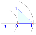y≧0 , x≧0 , x+y≦1 のとき,(x+1)2+y2 の最大値と最小値を求めよ. (x+1)2+y2=k とおくと,k は (−1 , 0) を中心とする円の半径(の2乗)を表わす. [解答](x+1)2+y2=k とおくと,k は (−1 , 0) を中心とする円の半径(の2乗)を表わす. 点 (1 , 0) において最大値 k=4 点 (0 , 0) において最小値 k=1 をとる.…(答) |