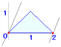 ○ 図1のように,連立不等式 x≧0 , y≧0 , y≦−x+2 で表わされる三角形の領域において,y−x の取りうる値の範囲を求めたいものとする.
