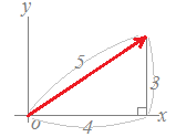 (解答)右図のように横の長さが4,縦の長さが3の直角三角形の斜辺の長さになるから