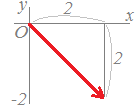 (解答)右図のように横の長さが2,縦の長さが2(y座標が-2のとき長さとしては2)の直角三角形になる. 公式を使って計算するときは,負の値でも2乗すると正になるから,気にせずそのまま計算したらよい. 〇 2点 だから になります. これは2点間の距離 と同じです.