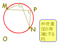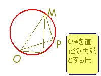 ※この問題には,次のような別解があります.右図のように,∠APB=90°となれば点Pはその円周上にあるから (点PがAやBに一致するときもこれで成り立つ.) これら2つの式が同じものであることは,次のように示すことができます.