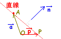 ※直線の方程式は,「方向ベクトル」で表す方法と,「法線ベクトル」で表す方法があります。この頁では「法線ベクトル」で表す方法を取り扱っています.