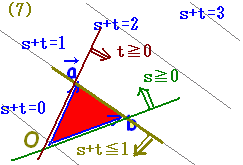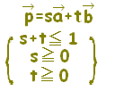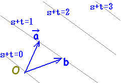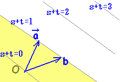 =>[作者]:連絡ありがとう. 質問者が気分を害されるかもしれませんが,質問されているようにs,tの範囲が独立に定まる場合は,当教材で扱っている内容よりもはるかに簡単なのでこの頁では取り上げませんでした. 例えば, となる位置ベクトル |