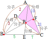 (3) BP:PFを求めよメネラウスの定理により よって,BP:PF=31:14…(答)