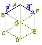 正六角形ABCDEFにおいて, とするとき、次の各ベクトルを |