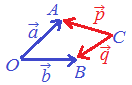 \( \overset{\longrightarrow}{AB}=\overset{\longrightarrow}{AC}+\overset{\longrightarrow}{CB}=-\vec{p}+\vec{q} \)
