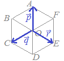 (2) また2点 A, Bを結ぶベクトル \( \overset{\longrightarrow}{AB} \)は, \( \vec{q}-\vec{p} \)と表すこともできる.