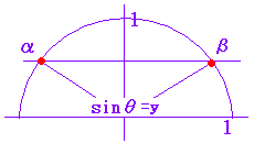 0°<α,β<180°でsinα=sinβのとき, 図より α=180°-β ![]() |