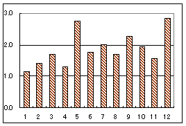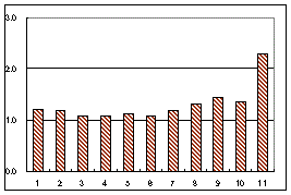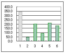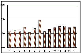 グラフ4は回答者全体をその合計得点によって高(H)〜低(L)の5群に等分したときの群別平均得点のグラフである.これによれば,この頁全体は下位群が精度よく(傾きが大きい)識別でき,診断テストなどに適していることが分かる.