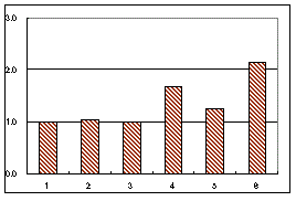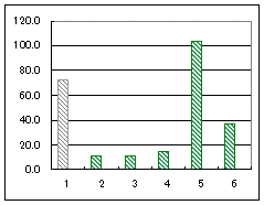 グラフ2は横軸が問題番号,縦軸は直前の操作以降その問題の採点までの経過時間(秒)を表わす.ただし,第1問は初めからの時間.
