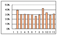 グラフ4は横軸が問題番号,縦軸がヘルプ利用率を表わす.(この頁では,ヘルプがよく利用されている.)
