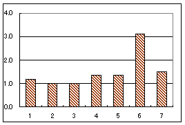 グラフ2は横軸が問題番号,縦軸は直前の操作以降その問題の採点までの経過時間を表わす.ただし,第1問は初めからの時間.