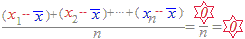 ○ データの各々の値と平均値 との差xk− (k=1,2,3,..)のことを偏差といいます. ▼ 偏差が大きいほど中心付近から離れているので,この偏差の平均値を求めると,全体の散らばり具合が表せるのではないかと考えてみます.ところが,右図2の例では,x4− , x5− , x6− は正の値になりますが,x1− , x2− , x3− は負の値になって,偏差の平均は0になるため,散らばり具合を表すことができません.