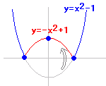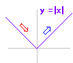 ![]() ※x=−1, 1のときのように,折り目(角)があるときは微分係数は定義されないので,y’=0ではなくて,y’は存在しない.しかし,この場合のように,関数が「連続」であって,かつ,その点で「増減が変化」していれば「極値」となる. |