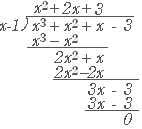 x3+x2+x−3=(x−a)(x2+bx+c) ならば a は 3 の約数(符号は正負あり:±1,±3) x3+・・・ + p=(x−a)(x2+・・・+c) ならば a は p の約数(符号は正負あり) 正負を考えて p の約数に順に当たっていけば「いずれ見つかる」 |