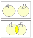 (解答)「同じ色の玉が出る」ことを「赤玉が2つ」の場合と「白玉が2つ」に分けて考える. 赤玉が2つ出る確率は = 白玉が2つ出る確率は = ⇒ + = を答とする. この例では,A 「赤玉が2つ出る」,B 「白玉が2つ出る」,とするとき,A∩B=∅なので(A と B の共通部分がない),どちらか一方が起こる確率は「足し算で求められる」.