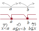 (2) 2つの絶対値記号|a|と|b|(ただし,a<bとする)を同時に外すには,3つの区間
