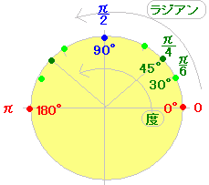 度数法(60分法) ・・・ 単位は度 弧度法 ・・・単位はラジアン(省略するのが普通) |