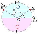 ⇒「サインはy」と覚えておく 右図の単位円で,y座標が