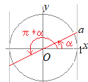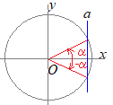 ⇒「コサインはx」と覚えておく 右図の単位円で,x座標が