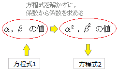 α+β=p αβ=q 新しい方程式については (α−1)+(β−1)=(α+β)−2=p−2 (α−1)(β−1)=αβ−(α+β)+1=q−p+1 だから,方程式は x2−(p−2)x+q−p+1=0