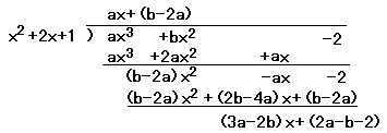 ax3+bx2−2=(x2+2x+1)(ax−2)とおく(考え方3):因数定理を習っているとき−−因数定理を繰り返し適用する.