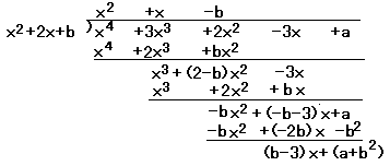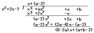 割り切れるのだから,6−2a=0,a+b−2=0 a=3,b=−1・・・(答)