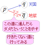 an−bn=(a−b)(an−1+an−2b+an−3b2+・・・+bn−1)を使うと 3pq−2pq=(3p)q−(2p)q =(3p−2p){(3p)q−1+(3p)q−2(2p)+(3p)q−3(2p)2+・・・+(2p)q−1} p, qは2以上の整数だから • (3p)q−1+(3p)q−2(2p)+(3p)q−3(2p)2+・・・+(2p)q−1>1は明らか • 3p−2p>1は次のように数学的帰納法で示せる. (T) p=2のとき 3p−2p=9−4=5>1は成り立つ (U) p=k (k≧2)のとき 3k−2k>1が成り立つと仮定すると 3k+1−2k+1=3(3k−2k)+3×2k−2k+1 =3(3k−2k)+(3−2)2k =3(3k−2k)+2k≧3+4>1 (T)(U)より,2以上の整数pについて,3p−2p>1が成り立つ. 以上により,nが素数でなければ,3n−2nが素数でないことが示されたから,対偶証明により,3n−2nが素数ならばnも素数であるといえる. |