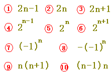 ○初めの幾つかの項が与えられているときに,一般項を求めるためには,項の番号と値との対応表を作ってみて,どんな関数で対応させればよいかと考えます.