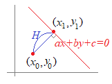 一般に,平行な2直線ax+by+c=0とax+by+d=0の距離は