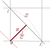 右図において点(1, 0)と(0, 1)の距離は,1辺の長さが1の正方形の対角線の長さだから,そこで,初めに考えた問題:「点(1, 2)と直線x+y−1=0の距離」を求めるには, まず,点の座標(1, 2)を直線の方程式の左辺だけを切り出した式x+y−1に代入して「式の値」を求める. 1+2−1=2 次に,この式の値2に縞模様1目盛り当たりの間隔 |