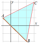3点A(−1, 2), B(1, −3), C(2, 4)を頂点とする△ABCの面積を求めてください. |