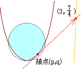 と変形できるから,領域Dにおいて,点 (解法1)・・・微分を習っている場合 接点の座標を(p, p2−1)とおいて,接線が点