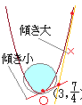 この接線が点(※黄色で示した接線は,領域Dを通らない) このとき,