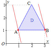 [解説を読む]xy平面上の点A, B, Cの座標は,それぞれ (1, 1), (3, 1), (2, 3)である.三角形ABCの内部および境界で与えられる領域をDとする.以下の問いに答えよ. (1) 領域Dを図示し,不等式を用いて表せ. (2) 点(x, y)が領域D内を動くとき,4x+yの最大値と最小値を求めよ. (3) 点(x, y)が領域D内を動くとき, (2021年度長崎大 情報データ科学部)