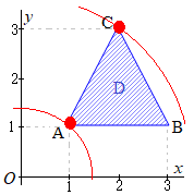 条件を満たす領域は右図の水色で示した部分(内部および周上)